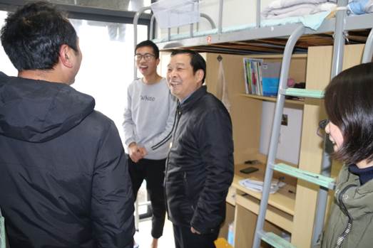 每到一个宿舍,周建超都详细了解学生的生活、学习情况,给家庭经济困难学生送去棉衣、被子等生活用品,让他们感受到学校的温暖和关怀。周建超叮嘱他们遇到困难要随时向辅导员反映,学校、学院、家庭三方一起,没有克服不了的困难。周建超还鼓励他们好好复习,要珍惜大好时光,把学习作为一种责任、一种精神追求、一种生活方式,让勤奋学习成为青春远航的动力,努力把自己塑造成为担当民族复兴大任的时代新人。