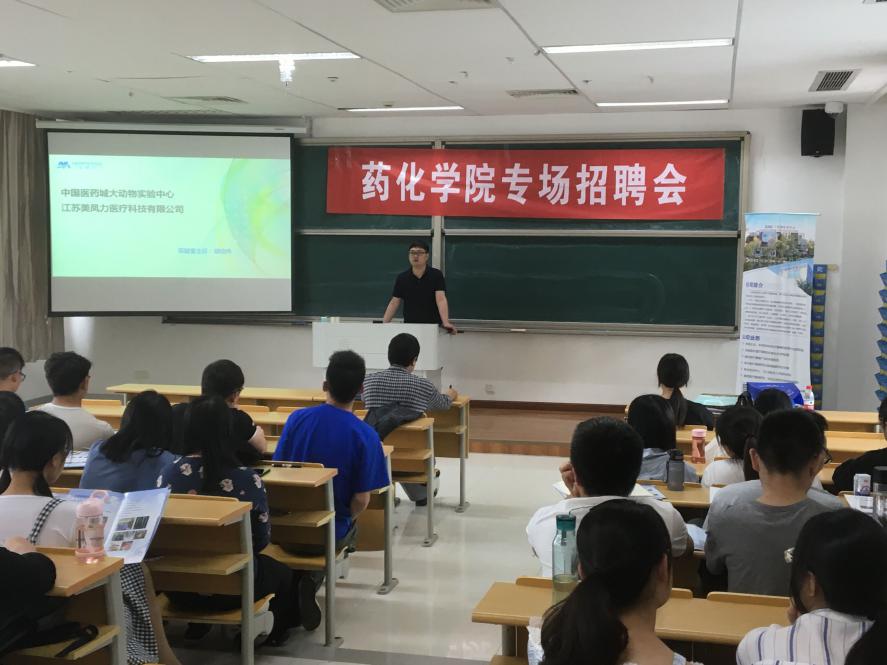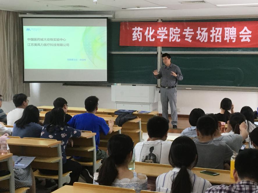 5月10日下午,我院在教学楼1303教室针对2016级制药专业学生举办江苏美凤力医疗科技有限公司专场实习和就业宣讲会,学院副书记于晓萍、制药工程王群老师、学工办朱涛老师参加此次宣讲会。