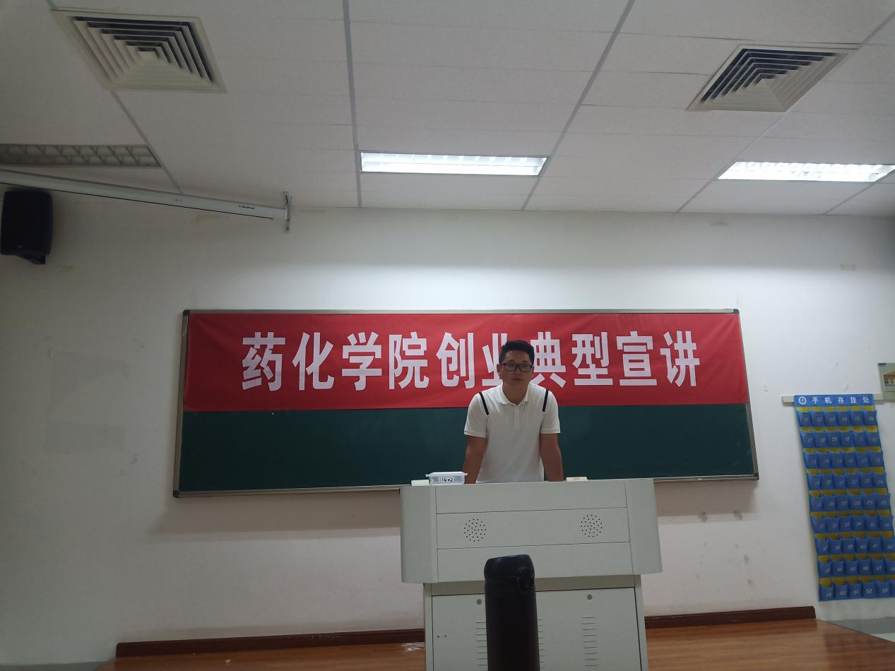 为了引导学生树立正确的就业创业理念,助力大学生成功就业创业。6月16日晚,药化学院邀请17届毕业生邓瑞,在教学楼1402举办“创业典型宣讲会”。