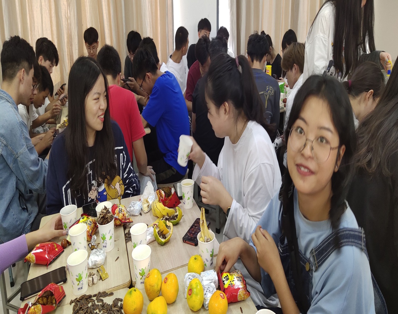 秋风送爽,丹桂飘香,10月1日上午,我院留校同学和老师欢聚一堂,共同庆祝中秋国庆双节。此次茶话会特地为同学们准备了月饼、小零食和饮料。会场上,同学们有说有笑,洋溢着青春的气息!