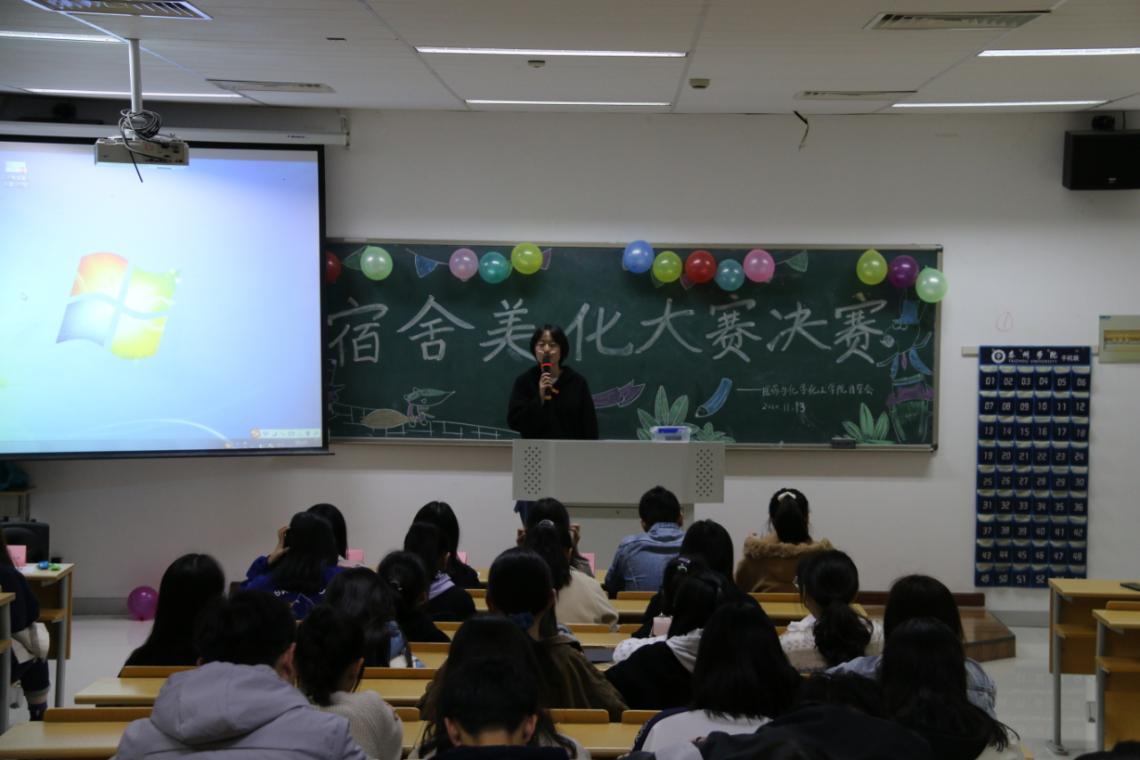 为了加强我院公寓文化建设,丰富学生课余活动,营造文明和谐优美的宿舍氛围,打造温馨家园。11月14号晚,我院学生会在公寓中心举办宿舍美化大赛决赛,同时宣告为期半月的宿舍美化大赛落下帷幕。决赛由曹畅畅同学主持,聘请校自管会及他院自管会成员担任主评委,四十名班级代表担任大众评委,最终通过总评来决出比赛的获奖者。