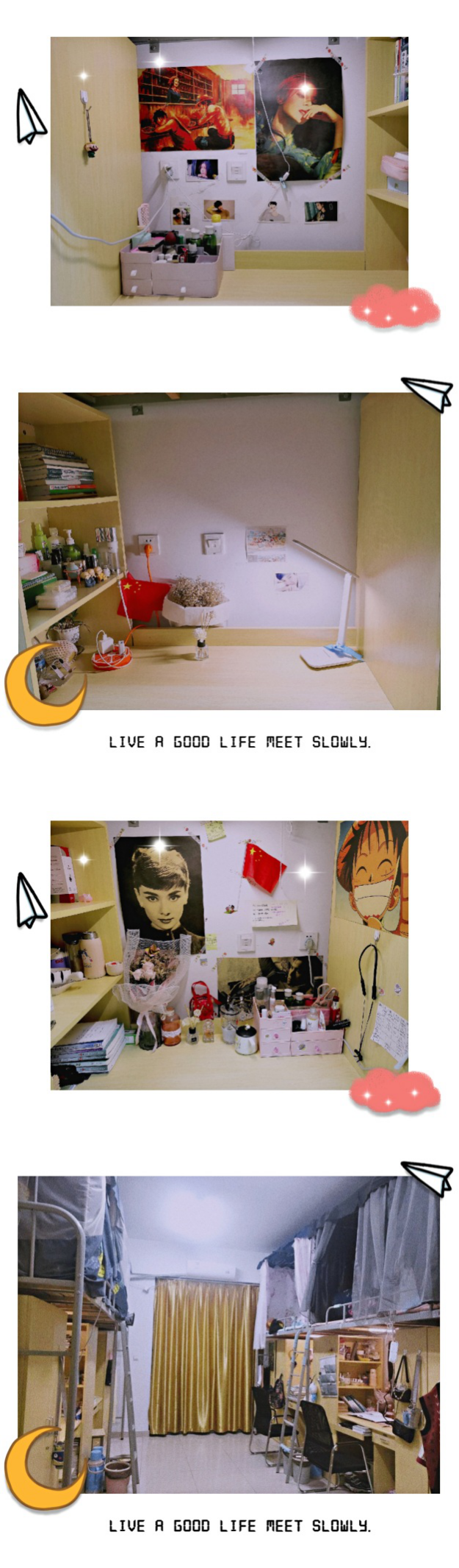 每个宿舍都根据自己的宿舍文化主题、宿舍精美布置以及宿舍成员间深厚的感情来展示自己漂亮的家园,其中包括宿舍取得的集体荣誉,一起品尝过的美食,还有的展示了她们为比赛准备的歌曲。