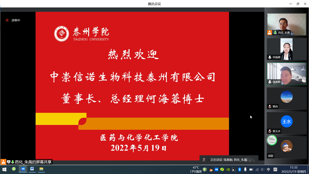 5月19日下午,中崇信诺生物科技泰州有限公司董事长、总经理何海蓉博士应邀为我校师生作《中国医药城新“兽”药研发与评价“6G”中心建立与应用》的学术报告,报告由学院院长助朱禹理主持。校科研处处长助理周银及我院师生参加了此次学术报告。