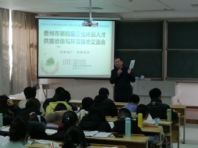 12月1日上午,学院邀请泰州市生态环境局人事处处长印锋给19应化、19生药和部分18级同学开展环保类人才专场招聘洽谈会。