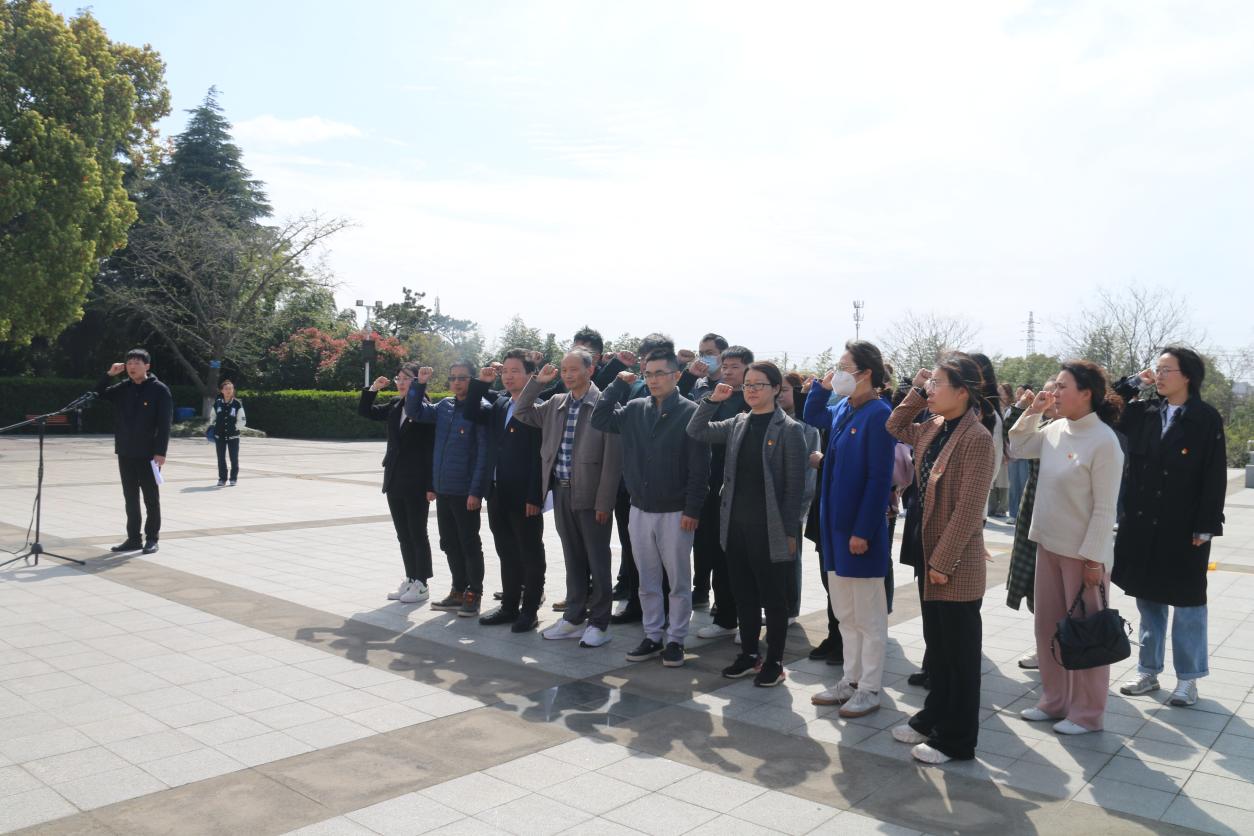 到达烈士陵园后,全体党员瞻仰了革命烈士纪念碑、敬献花篮,并鞠躬致敬,表达对先烈的敬仰和哀思。在烈士纪念碑前,学院党总支书记徐小兵领誓,全体党员同志重温了入党誓词。