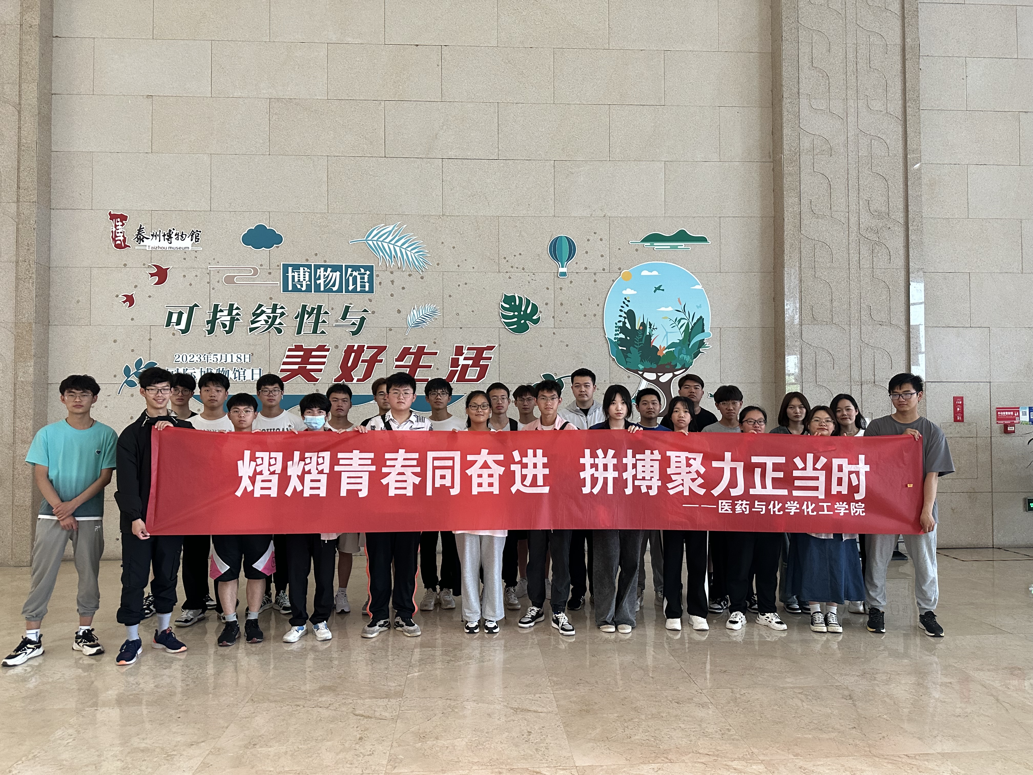 为深入学习贯彻习近平新时代中国特色社会主义思想主题教育,运用党史资源开展学习,在学思践悟中坚定理想信念,5月27日,药化学院组织部分学生前往泰州市博物馆开展“熠熠青春同奋进,拼搏聚力正当时”主题教育活动,。