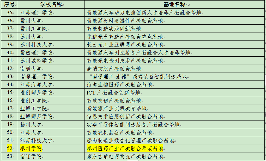 近日,江苏省教育厅公布了2023年省级产教融合重点基地建设点遴选结果(苏教办高函〔202318号),我院申报的“泰州医药产业产教融合示范基地”获批立项。