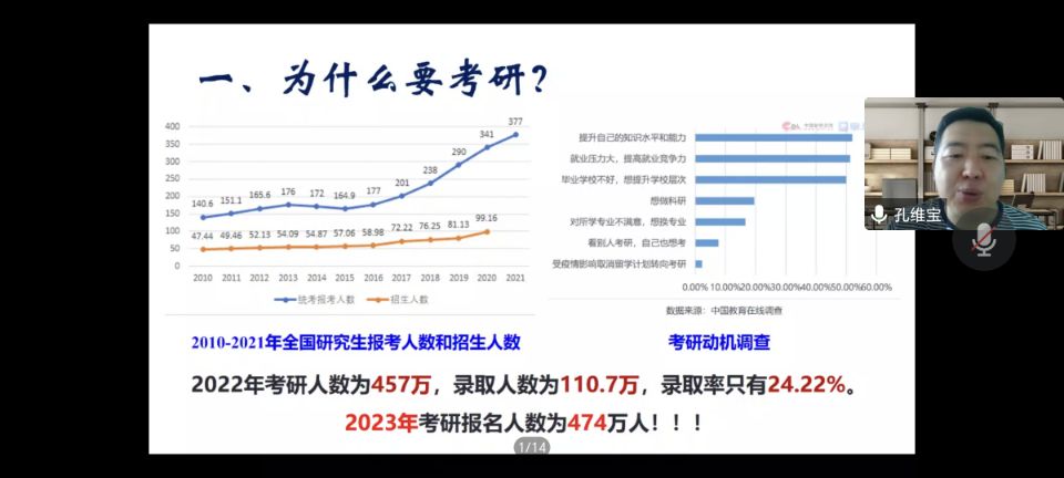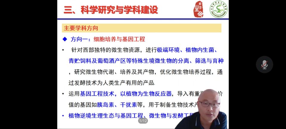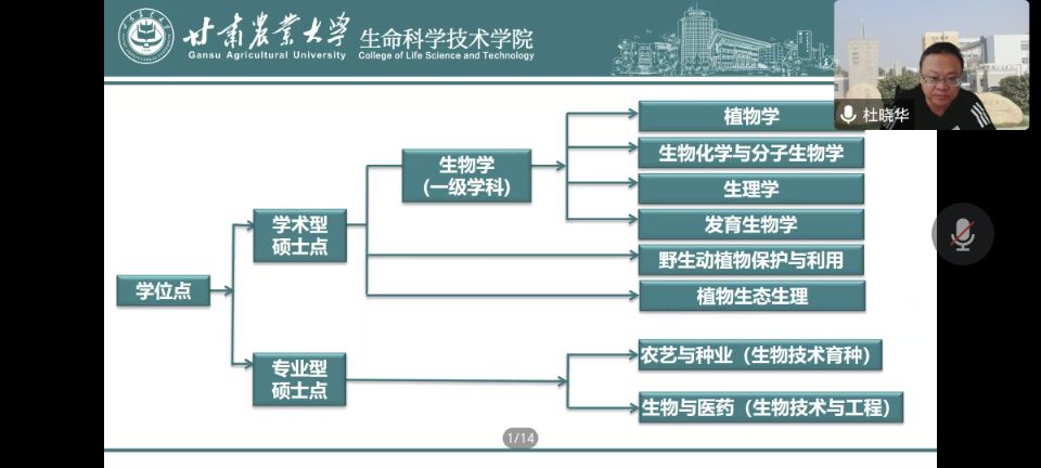 本次西北专场考研辅导培训会邀请到了西北师范大学生命科学学院副院长孔维宝教授、甘肃农业大学生命科学技术学院院长杜晓华教授、兰州理工大学生命科学与工程学院副院长杨明俊副教授三位专家担任主讲。孔维宝对研究生报考类别选择、考研日程表等进行讲解,结合意愿西北院校给出报考建议;杜晓华从考研思路与备考策略等方面进行指导,结合近年硕士招生情况,进行了报考指导;杨明俊分享了科学研究与学科建设相关经验,介绍了相关院校的师资队伍、平台建设、人才培养、合作与交流等情形,结合相关专业报考条件、考试科目、近几年的录取情况,对我院学生作了研究生报考规划与辅导。