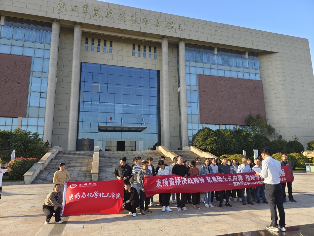 11月1日,医药与化学化工学院党总支以“发扬黄桥战役精神,聚焦硕士点申建,推动学院高质量发展”为主题,组织师生党员前往新四军黄桥战役纪念馆开展主题党日活动。