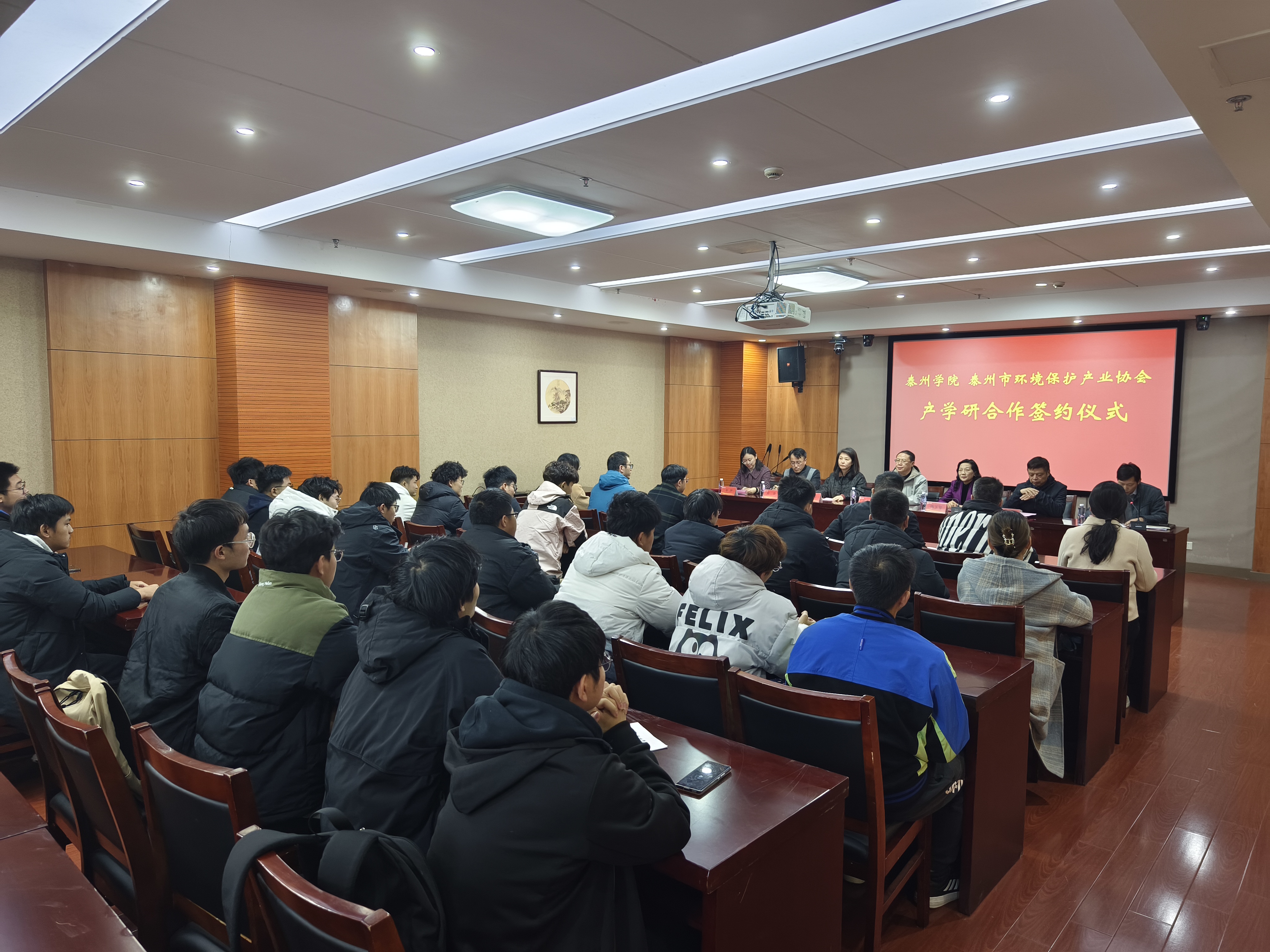 11月16日下午,我校与泰州市环境保护产业协会产学研合作协议签约仪式在学校会议室D1214举行。校党委常委、副校长薛小平,泰州市环境保护产业协会会长陈玉琴、副会长兼秘书长汤文奎、副秘书长钱军,校教育教学评估中心主任黄华、医药与化学化工学院总支书记徐小兵、副院长牟伊出席签约仪式,医药与化学化工学院环境工程专业部分师生参加活动。