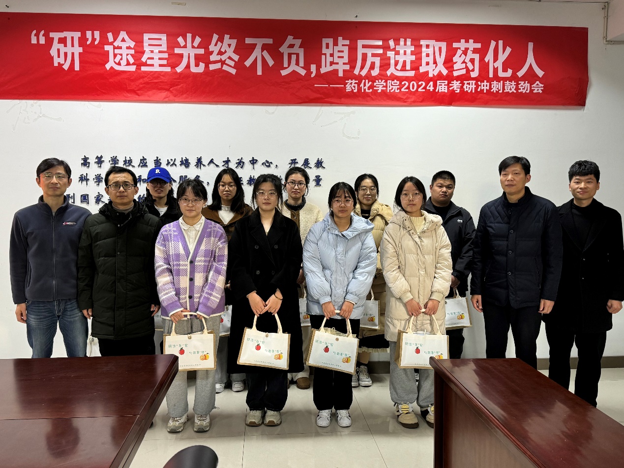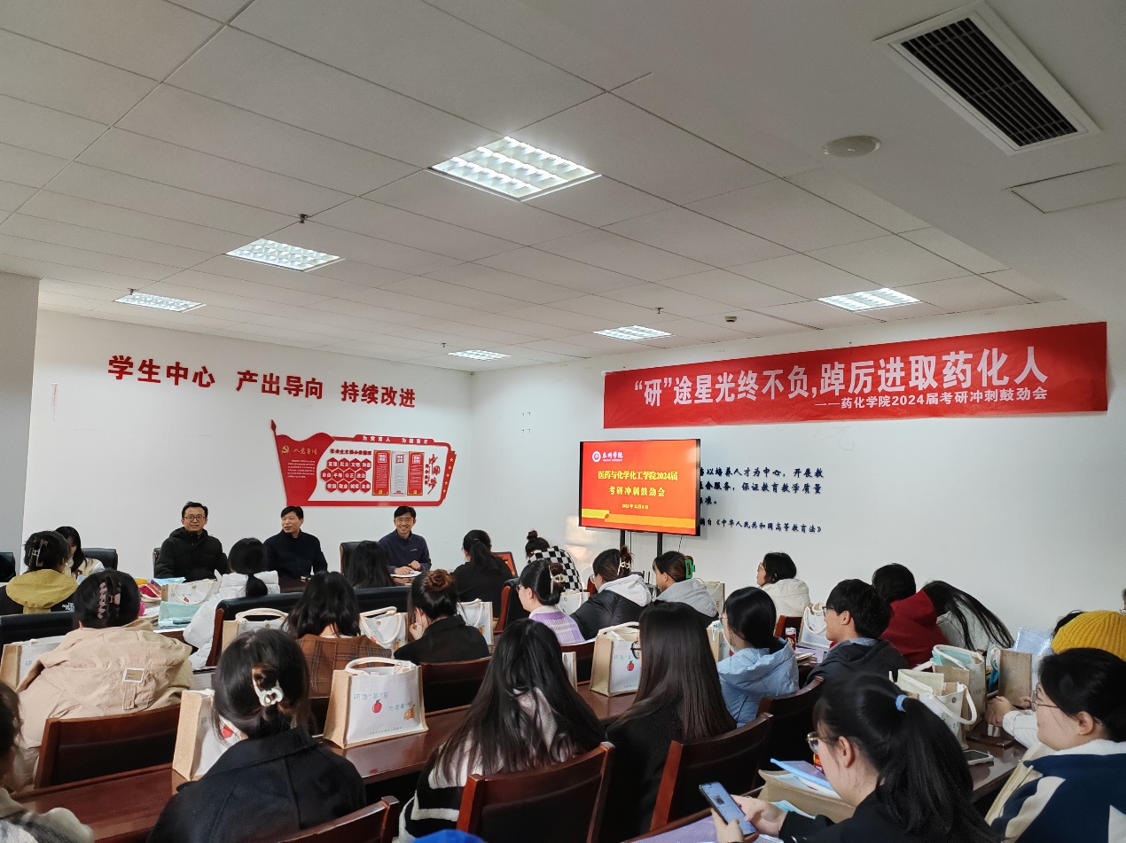 为鼓励2024届考研学生积极应考、缓解压力、坚定信心、鼓舞士气, 12月8日下午,医药与化学化工学院举办了2024届考研冲刺鼓劲会。医药与化学化工学院党总支书记徐小兵、副书记副院长张红祥、副院长朱禹,辅导员和考研学生代表参加本次活动。