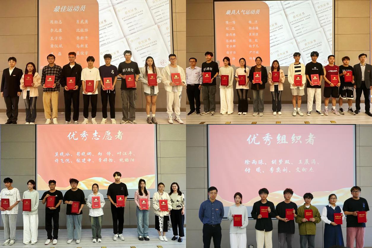 在校第九届田径运动会中,我院学子取得学生团体总分第一名的历史最好成绩。表彰大会现场,全体师生共同观看了运动员训练和比赛的精彩回顾视频,随后朱禹宣读学院的表彰决定,与会领导为获奖运动员、优秀志愿者等颁发荣誉证书和奖品,以表彰他们在运动会期间的优秀表现。最后,朱诚以“祝贺、感谢、希望”为关键词,对学院在校运动会中取得的优异成绩的运动员表示祝贺,对运动会中积极奉献的老师和同学们表示感谢,希望学院师生以本届运动会为契机,将在运动会上所展现出的团结、拼搏、进取的精神,带到日常的学习、工作和生活中,取得更多的第一名。