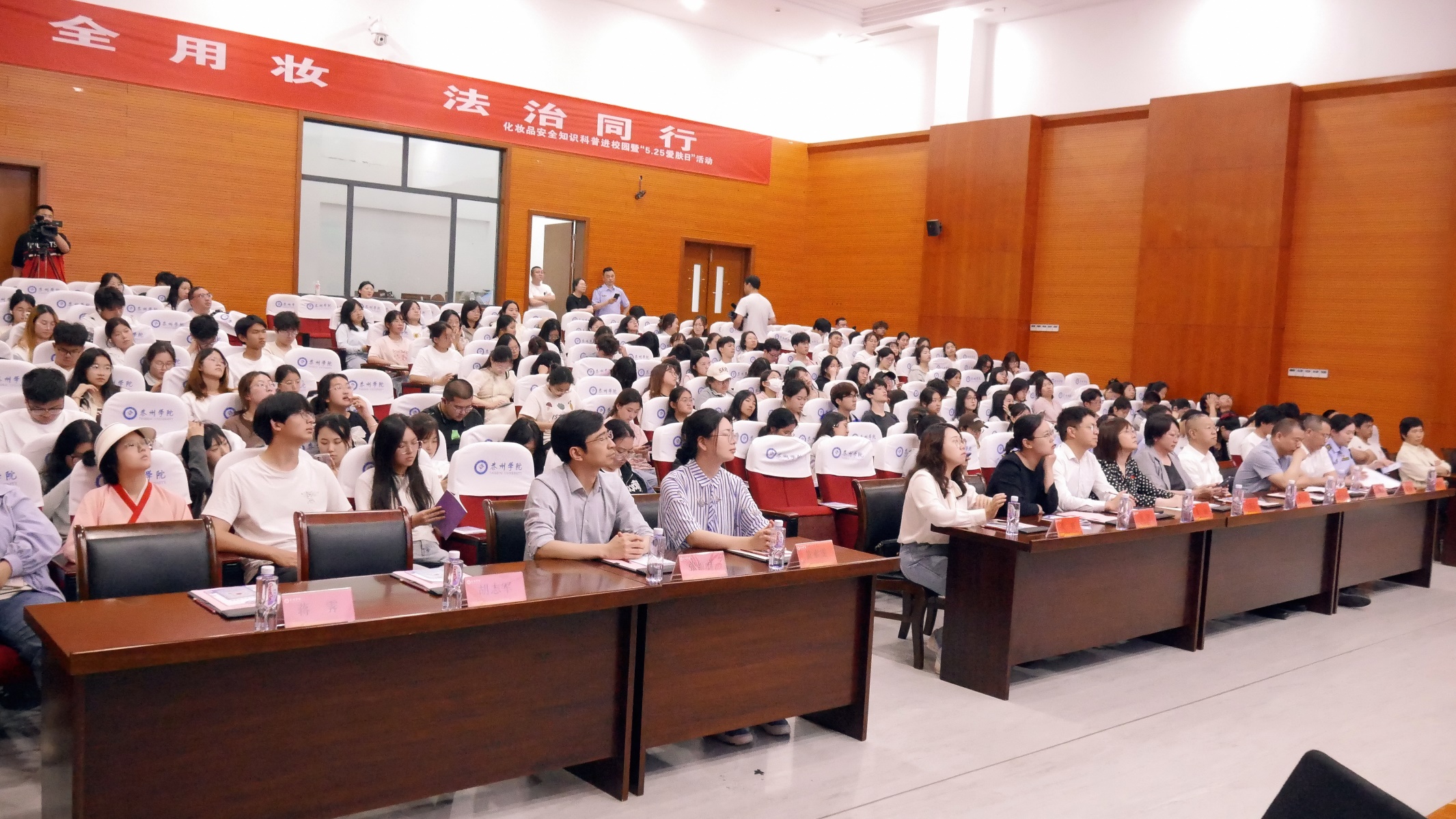 为促进化妆品安全法治知识普及,提升大学生健康护肤意识,5月24日下午,由海陵区市场监督管理局主办,校团委、医药与化学化工学院承办的“安全用妆 法治同行”主题活动在我校举办。校党委常委、副校长卜慧芬,泰州市市场监督管理局副局长李萍、海陵区市场监督管理局局长于圣筛、我院党政负责人等相关领导出席活动。