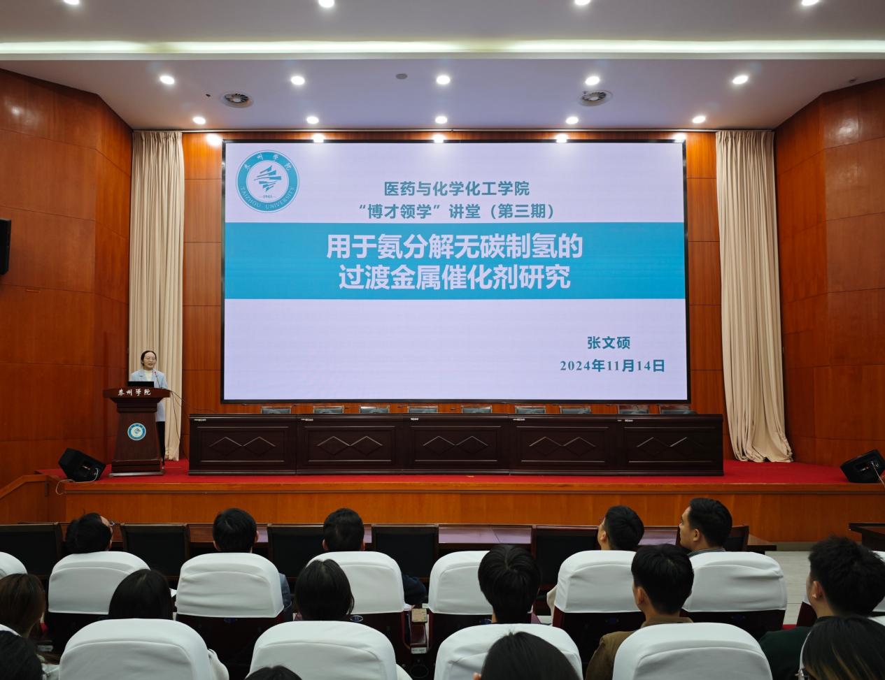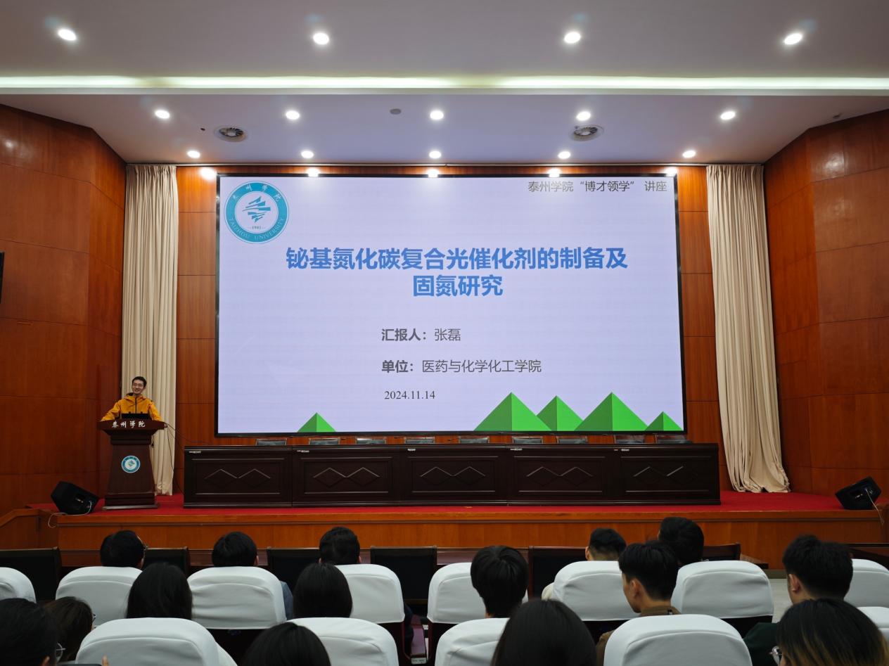 11月14日,医药与化学化工学院“博才领学”讲堂第三期学术讲座在行政楼D1216会议室举行,本期主讲是毕业于中国科学院生态环境研究中心环境工程专业的张文硕博士和毕业于扬州大学化学专业的张磊博士。学院领导、博士教师以及180余名学生参与活动,讲座由学院副院长朱禹主持。
