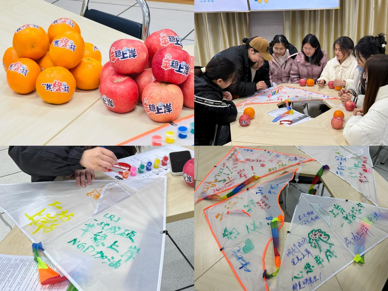 风筝载梦逐春光,心理解压向未来。活动将心理赋能融入育人环节,在轻快的音乐中,组织学生绘制“梦想风筝”,通过艺术表达缓解备考压力,增强心理韧性。21制药工程2班汪思同学表示:“参加本次活动,舒缓了准备复试的紧张压力,真切感受到了学院的关怀与帮助,复试信心倍增。”