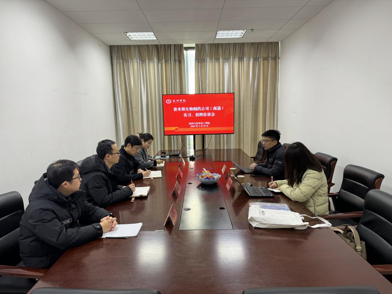 为进一步拓宽就业渠道,促进人才供需匹配精准对接,近日,医药与化学化工学院邀请普米斯生物制药(南通)有限公司来校开展专场招聘会。学院党总支副书记、副院长张红祥,副院长朱禹、院学工办主任、就业辅导员以及2025届毕业生代表参加活动。